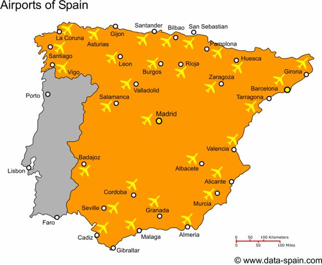 マドリード・バラハス空港(アドルフォ・スアレス空港)は、スペインの首都圏にある主要な国際空港です。ヨーロッパで最大の規模を誇る空港であり、旅客数では6番目に多い空港である。スペインの空港地図に記載されているように、マドリードの歴史的中心部から北東にわずか13kmのところにあります。この空港は、イベリア航空の主要なハブ空港であり、メンテナンス拠点でもあります。バルセロナ・エル・プラット空港は、バルセロナ市の中心部から南西に12km、エル・プラット・デ・ロブレガット、ヴィラデカンス、サン・ボイの各自治体に位置する国際空港です。カタルーニャ州の主要空港であり、マドリッド空港に次ぐ国内第2の規模を誇り、世界で最も利用客の多い空港のひとつです。